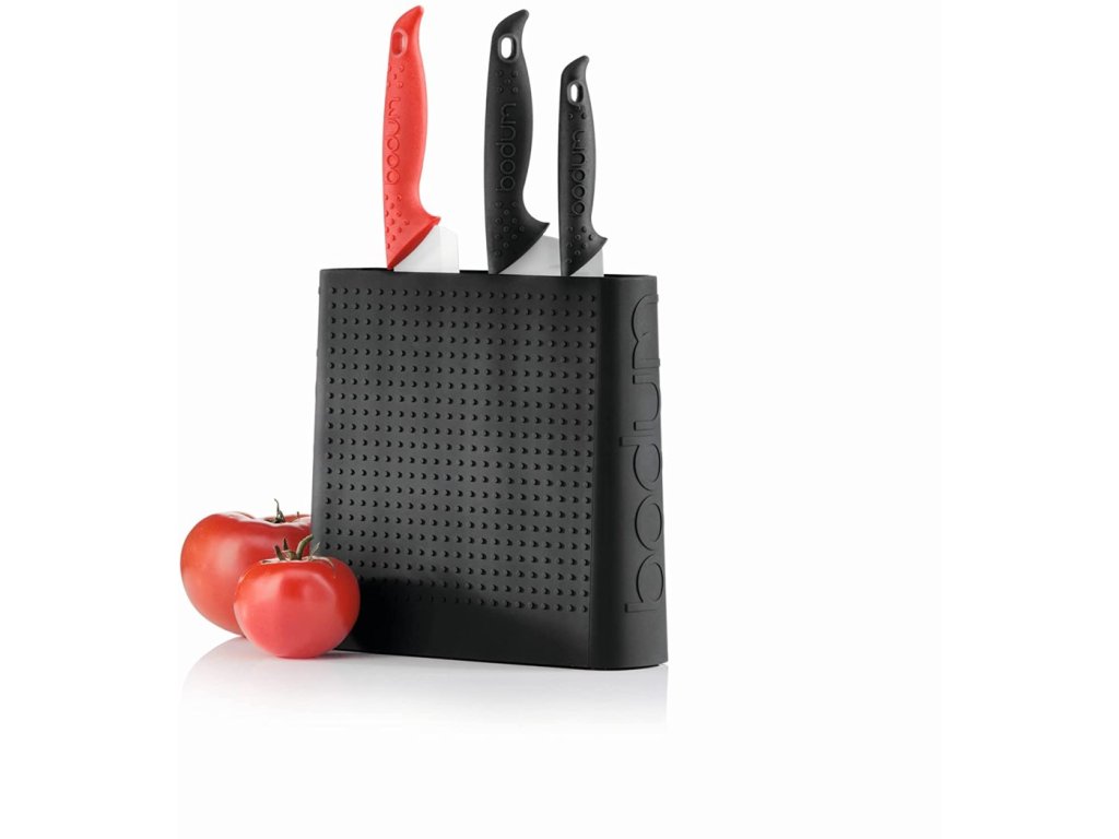 Nože různých velikostí lze bezpečně umístit kamkoli do bloku v libovolném směru