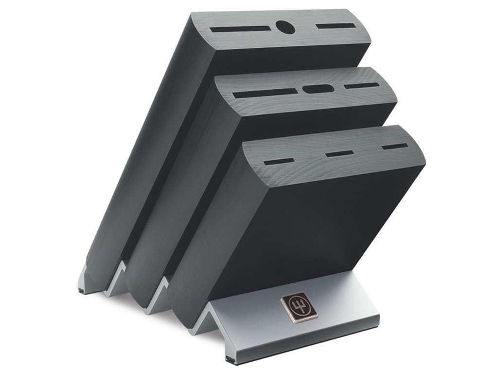 Blok na kuchyňské nože z bukového dřeva v černé barvě a hliníkovou základnou poskytuje maximální ochranu pro nože, a také bude ozdobou vaší kuchyně.Vhodný na 7ks nožů, ocílku a vidličku na maso.