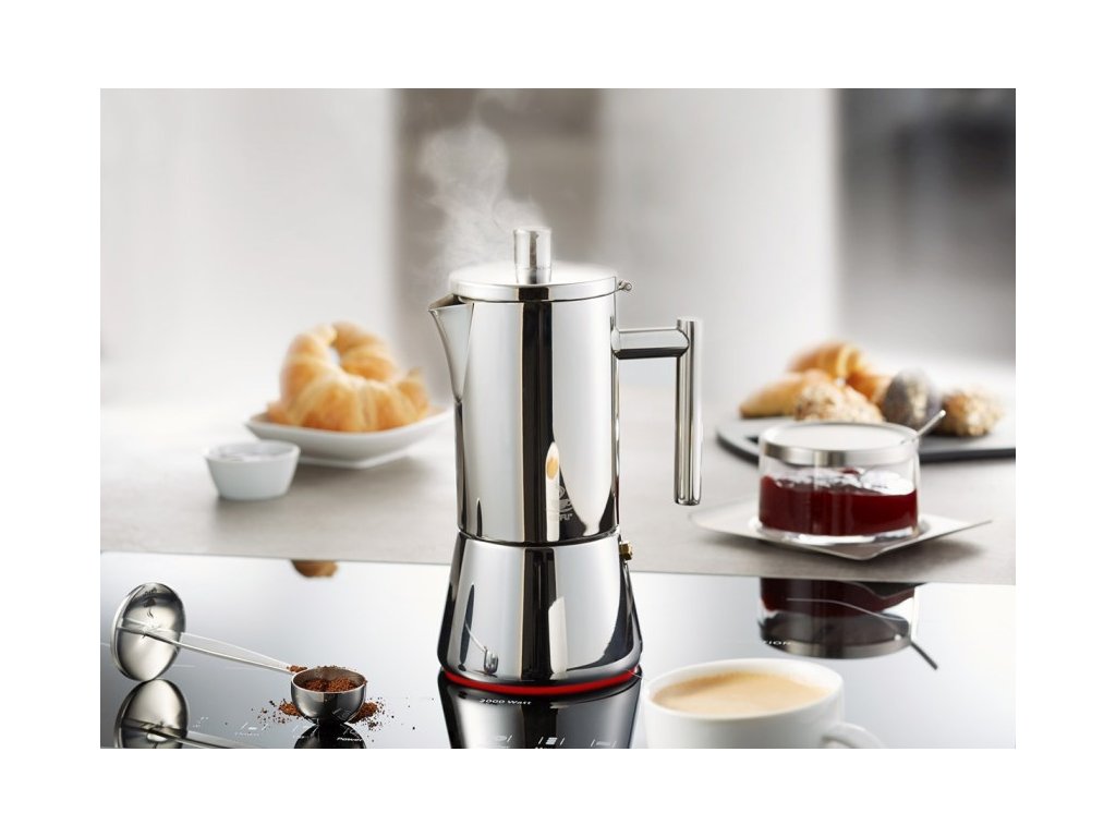Kávovar NANDO od GEFU kombinuje moderní design s klasickou italskou kulturou espressa. Je to tak snadné: Vložte vodu do nádoby, vložte síto a naplňte ji espresso kávou, našroubujte horní část a můžete dát na sporák. Mimochodem, kávovar je vhodný pro všechny typy sporáků včetně indukčních. A pokud si chcete vychutnat jen polovinu espressa, redukční síto umožňuje vaření s polovičním množstvím kávy.