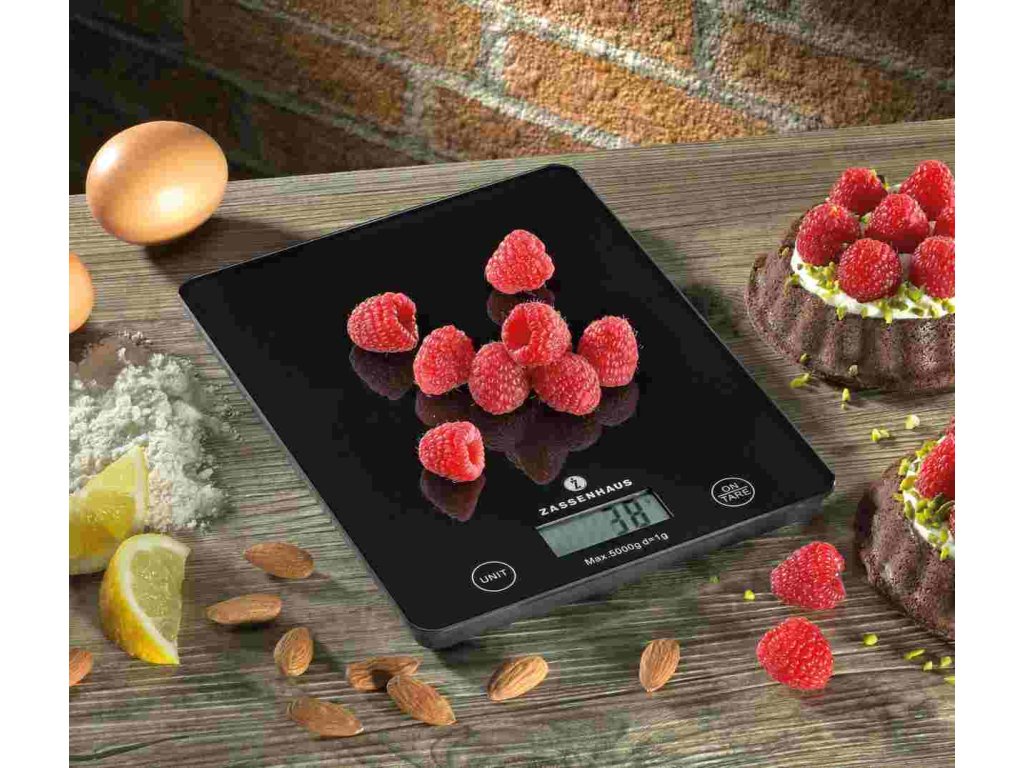 Skleněná, digitální, kuchyňská váha s LCD displejem.