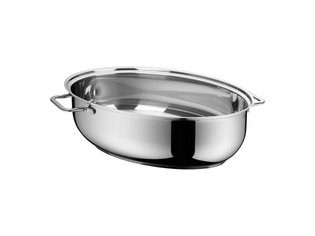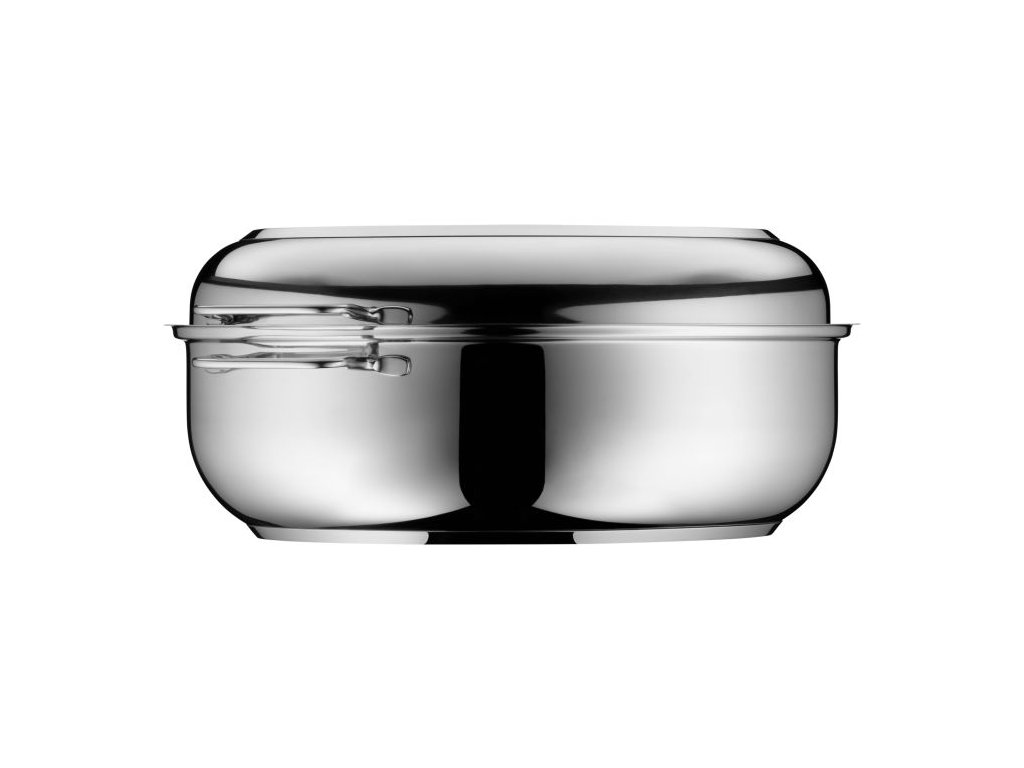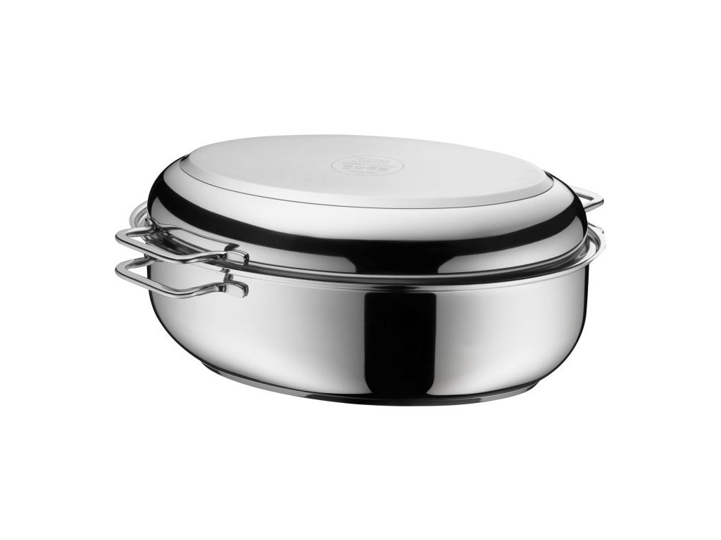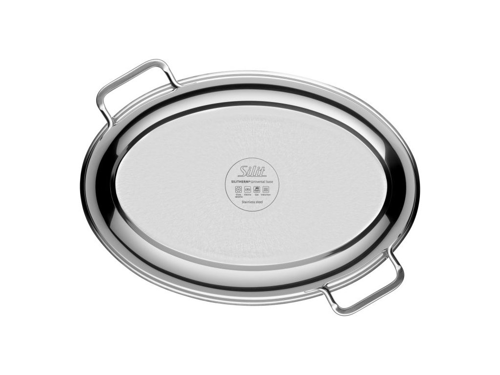 Multifunkční, všestranný extra pekáč s kovovým víkem od Silit, vyrobený ze zvláště kvalitní, odolné, nerezové, snadno udržovatelné a myčky omyvatelné nerezové oceli 18/10, přesvědčí při pečení, vaření a dušení na jakémkoli sporáku a také v troubě. Jednak jej lze použít jako velký pekáč, do kterého se bez problémů vejdou celé rodinné porce velkoobjemové zeleniny, drůbeže nebo pečeně. A na druhou stranu, kovová poklice slouží také jednoduše jako servírovací pánev pro přípravu široké škály smažených pokrmů a v neposlední řadě i pro stylové podávání u stolu. Pekáč a víko mají také energeticky úspornou základnu Silitherm® Allerd, která zaujme optimálním rozložením tepla a skladováním.Materiál: Nerezová nerezová ocel 18/10