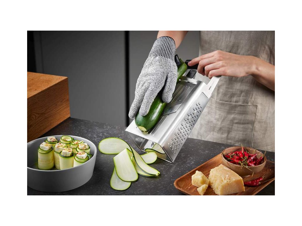 Jako všestranný bodyguard patří SECURO do každé kuchyně. Chrání prsty a ruce i před nejostřejšími čepelemi při krájení, krájení a strouhání, díky čemuž je práce v kuchyni ještě bezpečnější.