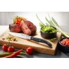 4 steakové nože jsou dodávány v elegantní krabičce z borovicového dřeva. Díky ultra ostrým čepelím nože bez námahy proříznou steaky z T-bone apod. Elegantní černá rukojeť pakkawood s nerezovými nýty se pohodlně drží. Nože jsou opticky zaobleny ozdobným znakem býčí hlavy.