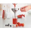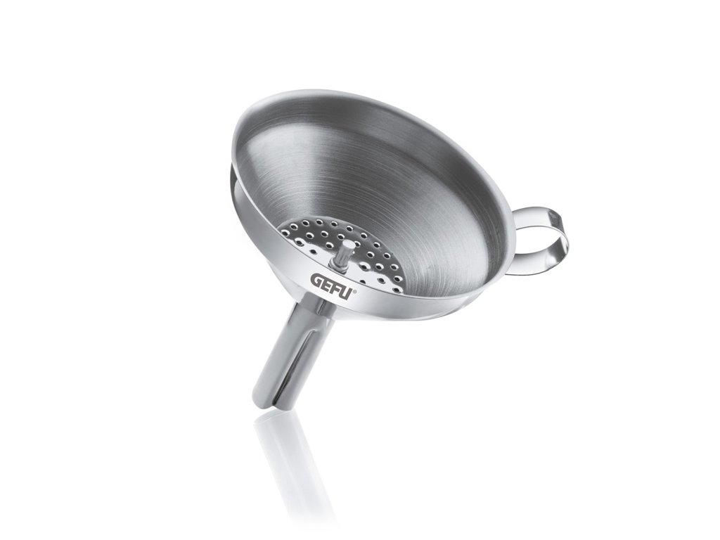 Malý plnící trychtýř je zvláště užitečný při plnění domácích šťáv do lahví! Neztratí se ani kapka - a díky vyjímatelné sítové vložce se do lahve nedostanou semínka ani zbytky ovoce. Praktický trychtýř bez sítové vložky také ukazuje svou sílu, když se má plnit mlýnek na koření nebo solnička.